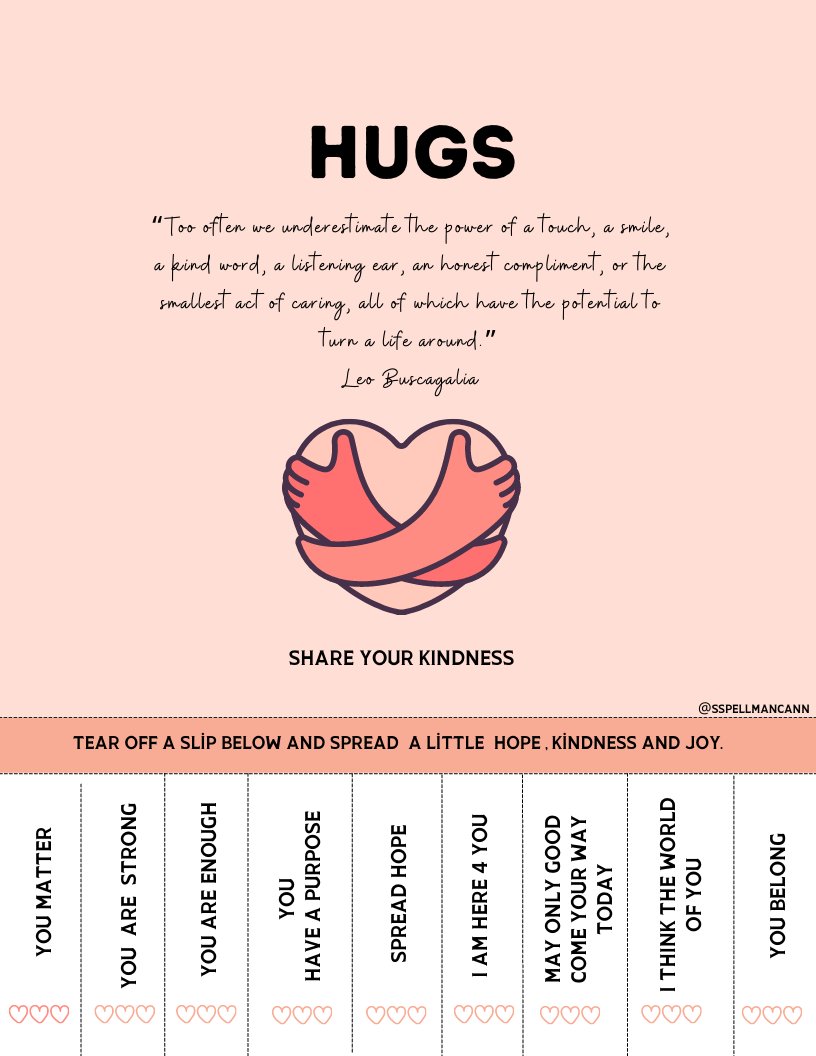 Hugs truly matter and can have a wonderful effect our mental health. Hugs increase our sleep, make us feel better and are overall good for our health and well being. It is too bad that hugging in school has changed. I recognize that we need to set boundaries for sure. It is extremely important that the person being hugged is open to hugs. However, hug days in school was a good thing and something I am proud of and brings back such positive thoughts. It was a special day and holds special memories for the students that I have taught.