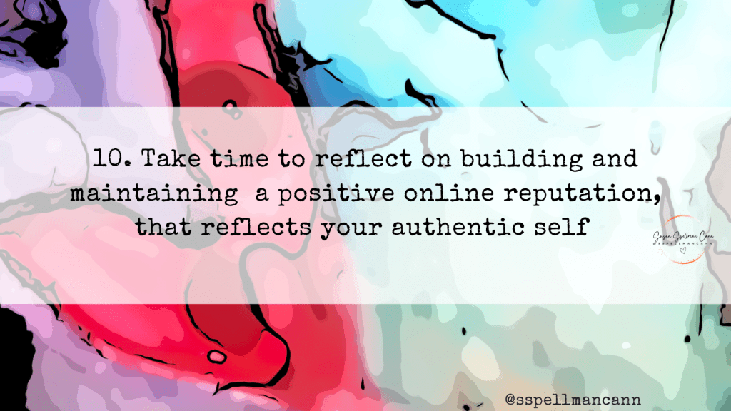 I know that everything I say and do online and off matters. There are so many ways to improve your online behaviour , but focusing on 10 can begin the process for yourself today. PAUSE before POSTING might be one.