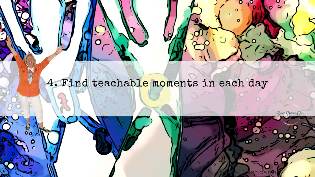 There are so many ways you can find teachable moments in your day. Brainstorm with your staff ways in which you can intentionally create these moments.