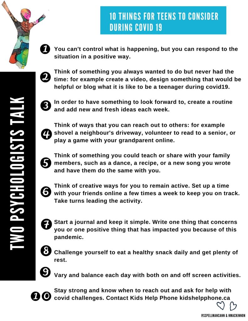 Ten Things for Teens to Consider During Covid 19 Published on April 16, 2020 by Counsellor TalkLeave a comment Share this: Click to email a link to a friend (Opens in new window) Email Tweet Click to print (Opens in new window) Print Click to share on Reddit (Opens in new window) Reddit Click to share on Mastodon (Opens in new window) Mastodon Like Loading...